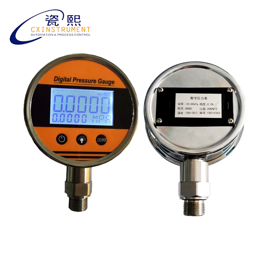 CX-DPG-108 серия Цифровой Датчик давления воздуха для всех электронных конструкций, питание от батареи, установка на месте легко. Передний конец принимает Высокоточный Пьезорезистивный Датчик давления, выходной сигнал от высокой точности, низкий температурный дрейф усиления усилителя, в Высокоточный Преобразователь A/D, цифровые сигналы в микропроцессоре могут обрабатываться, через обработку, с помощью ЖК-дисплея показывает фактическое значение давления. Интеллектуальный цифровой манометр является гибким в использовании, простой в эксплуатации, простой в отладке, безопасным и надежным. Широко используется в гидроэнергетике, водопроводной воде, нефтяной, химической, механической, гидравлической и других отраслях промышленности, измерение и отображение жидкого среднего давления.