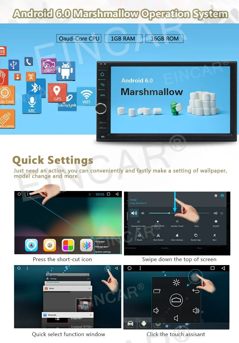 * Возможность установки большинства приложений: Tomtom Navigation, Waze, iGO, Google maps, здесь, Spotify, Pandora, Play Music и многое другое.