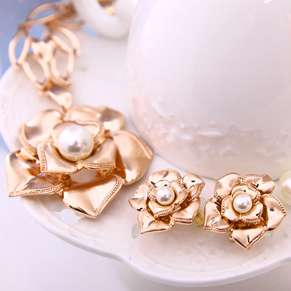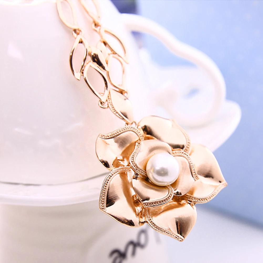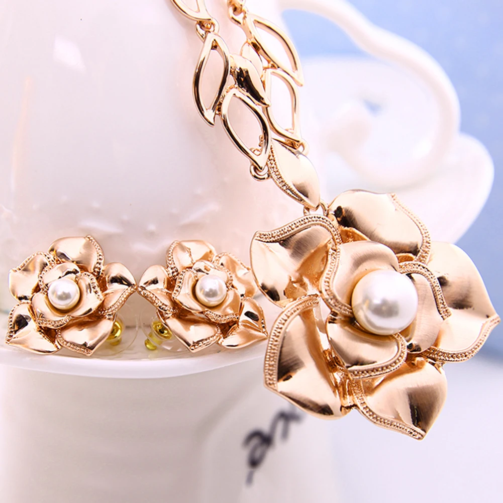 особенности: Faux Жемчужина Инкрустированные, Роза Форма Кулон, мода Комплект Ювелирных Изделий