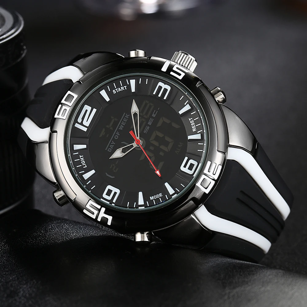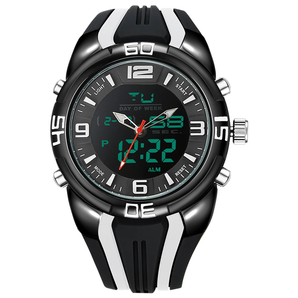 Характеристика:Секундомер, подсветка, светодиодный дисплей, Автоматическая Дата, хронограф, полный календарь, водонепроницаемость, будильник, отображение недели.