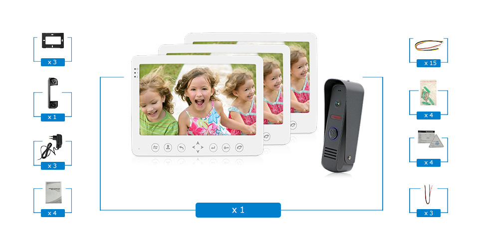 Отличная производительность ♦Цветной экран 7 "TFT с высоким разрешением ♦Супер тонкий дизайн ♦Сенсорная кнопка ♦Комнаты в комнату домофон ♦Ответ на дверь, мониторинг и разблокировка ♦Регулируемый цвет, яркость и громкость ♦Встроенная память может сохранить 86 фотографий, поддержка внешних Макс. 32 Гб sd-карт ♦12 мелодии для выбора |