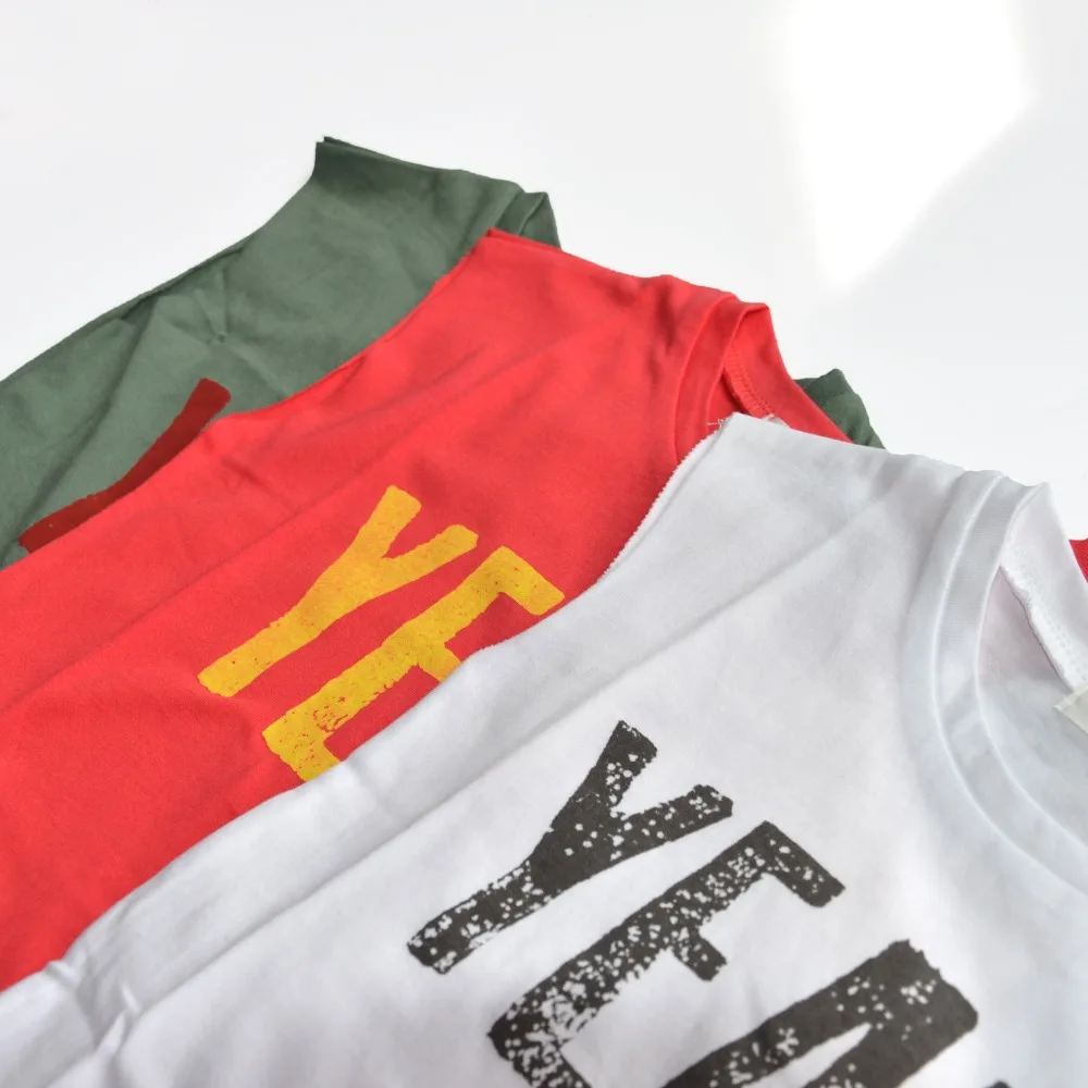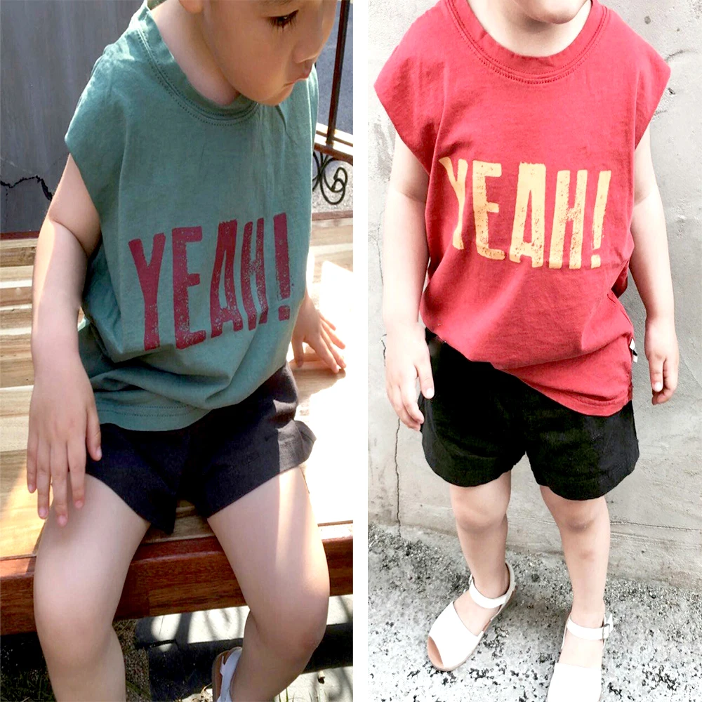 Летние футболки с принтом «да» для мальчиков хлопковые футболки ярких цветов для девочек, детские топы, футболки из чистого хлопка 2017 г., топы на бретелях в Корейском стиле