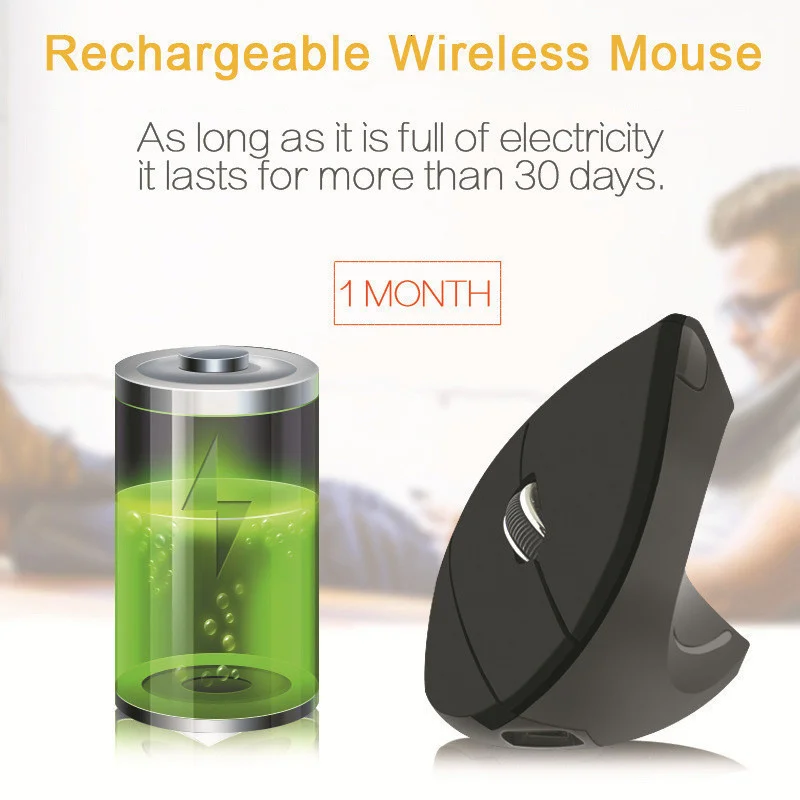 Беспроводная мышь CHYI, перезаряжаемая, эргономичная, вертикальная, правая/левая мышь, 1600DPI, USB, оптическая компьютерная игровая мышь для PC Gamer