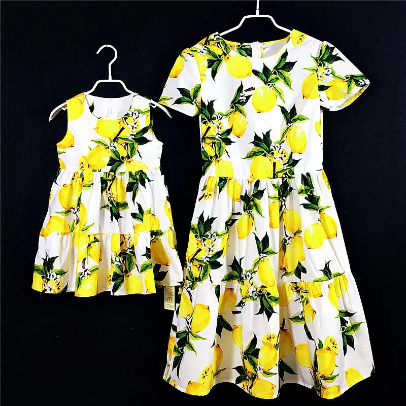 Коллекция 2017 года, весенне-осеннее Брендовое дизайнерское новое платье без рукавов с короткими рукавами модные платья в американском и европейском стиле длинное платье в стиле пэчворк с принтом лимона винтажное праздничное платье для девочекПлатьеПлатья для мамы и дочки, одежда для всей семьи, комплекты одежды для всей семьи, Семейные комплекты, женские плиссированные юбки, праздничные сарафаны, пляжные праздничные платья для девочек