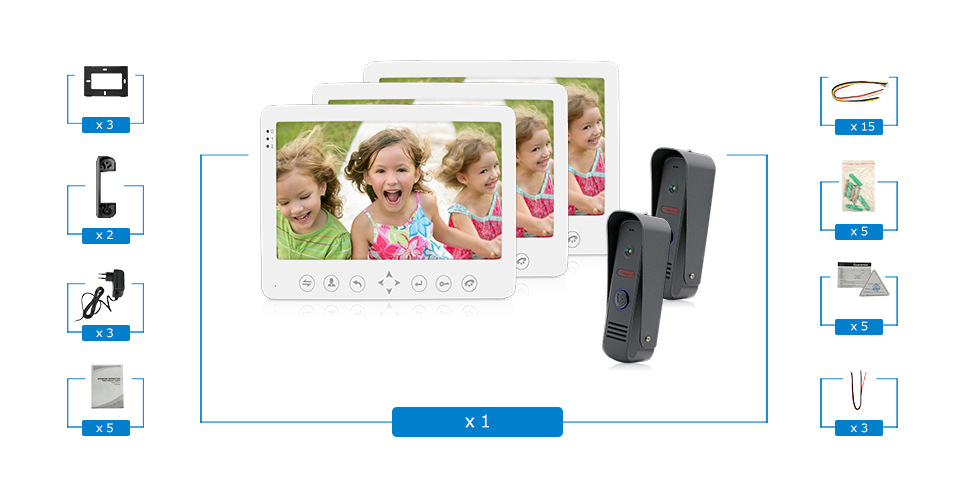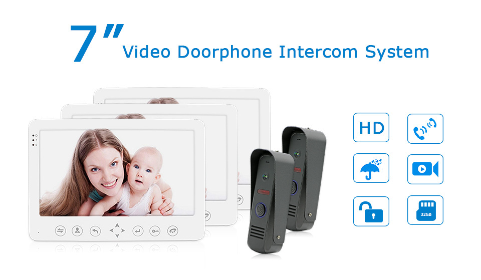 Отличная производительность ♦ 7 "TFT цветной экран с высоким разрешением ♦Super тонкий дизайн ♦Touch кнопка ♦Room в комнату домофон ♦ Ответ на дверь, мониторинг и разблокировка ♦ Регулируемый цвет, яркость и громкость ♦ Встроенная память может сохранять 86 фотографий, поддержка внешней карты памяти Max.32GB SD ♦ 12 мелодий на выбор |