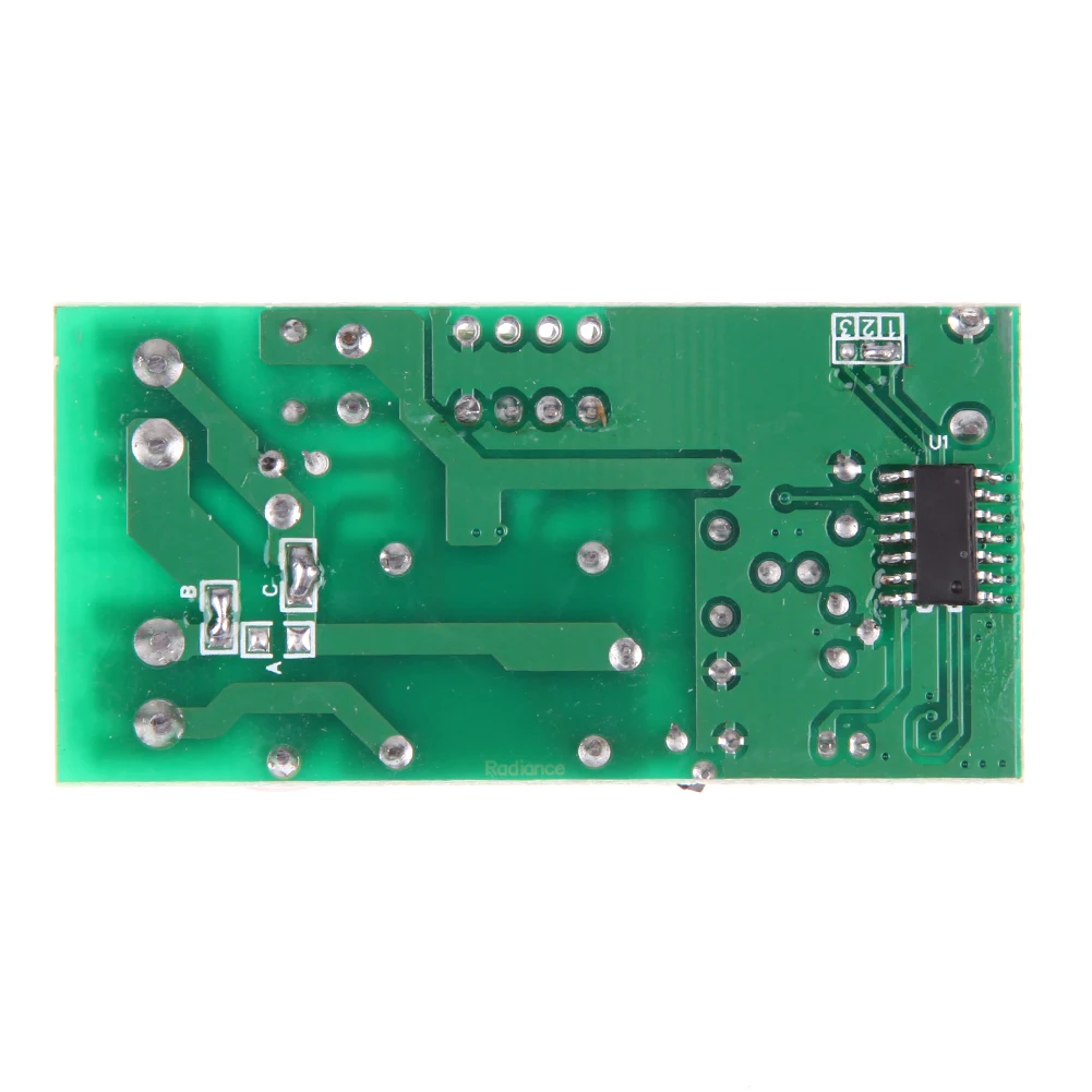 100% новые и высококачественные Безопасный и гибкий для эксплуатации и установки Три режима работы переключаются путем склеивания Поддержка многих пультов дистанционного управления для управления одним переключателем Поддержка управления многими переключателями с помощью одного пульта дистанционного управления Принимает реле 10А, которое может загружать электрические приборы 1500 Вт Широко используется в гаражных дверях, электрических дверях затвора, телескопических дверях Указаны в качестве предпочтительных компонентов в гараже с дистанционным управлением, роликовых штор, дверных замков, дистанционного зондирования, телеметрии, промышленного управления и беспроводной охранной сигнализации Описание: Вес: 60 г Модель: AK-RK01S-220-J 1. Пульт дистанционного управления: Размер печатной платы: 60*30*17 мм Размер корпуса: 66*36*21 мм Рабочее напряжение: от AC180 до 240 В Рабочая частота: 315 МГц/433 МГц Максимальная нагрузка: 1500 Вт Рабочий способ: самозамок, пробежка, межблокировка (переключается путем склеивания прокладки) 2. Пульт дистанционного управления: Размер: 50*33*10 мм Рабочее напряжение: 12 В постоянного тока Расстояние передачи: 100 м Рабочий ток: 10 мА Рабочая частота: 315 МГц/433 МГц Кодированный Тип: Fix code Кодовый режим: склеивание колодки Номер кнопки: 2 кнопки Выход рабочий способ: Переключается путем склеивания колодки (1, 2, 3) 1. Самозамок: Подключите 2 и 3 с короткой вилкой. 2. Пробежка: (1, 2, 3) три склейки не являются занятиями без подключения. 3. Внутренний замок: Подключите 1 и 2 с короткой вилкой. Метод обучения и удаления: 1. Метод обучения: нажмите код обучения в течение 3 секунд. Индикатор будет выключен, а затем ослабит палец, нажмите любую кнопку пульта ДУ, индикатор мигнет 4 раза, а затем, как правило, на которой вы учитесь успешно. 2. Метод удаления/очистки: Нажмите кнопку обучения около 8 секунд, индикатор будет выключен на все время, это означает, что информация, которую вы держите, была удалена успешно. Примечание: Этот товар может узнать 20 различных кодов пульта дистанционного управления или любые кнопки, и Он очистит самый ранний пульт дистанционного управления при превышении 20.