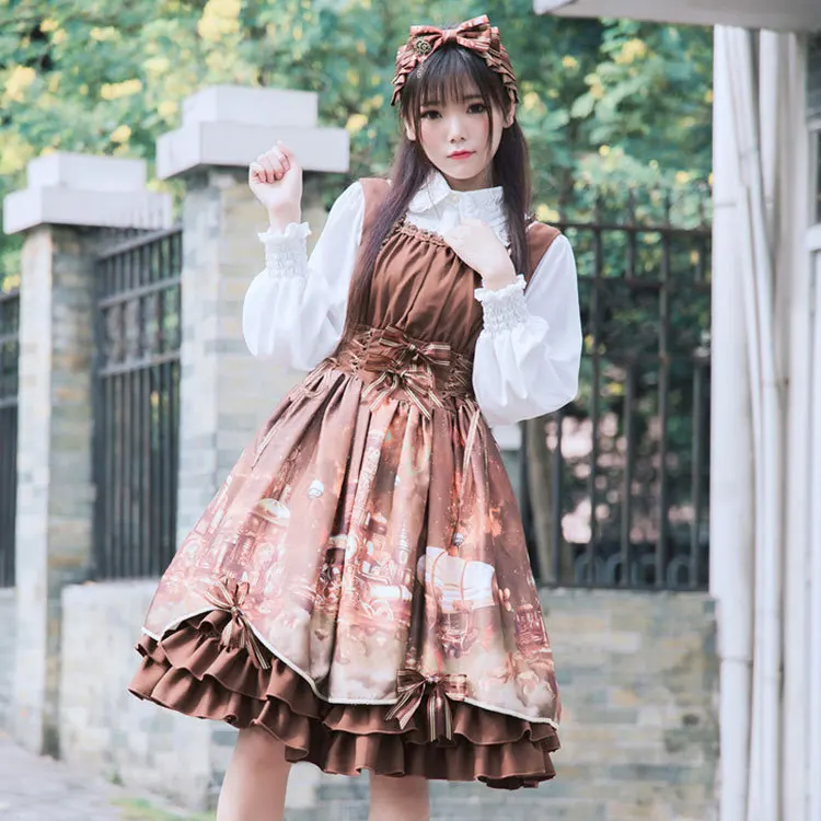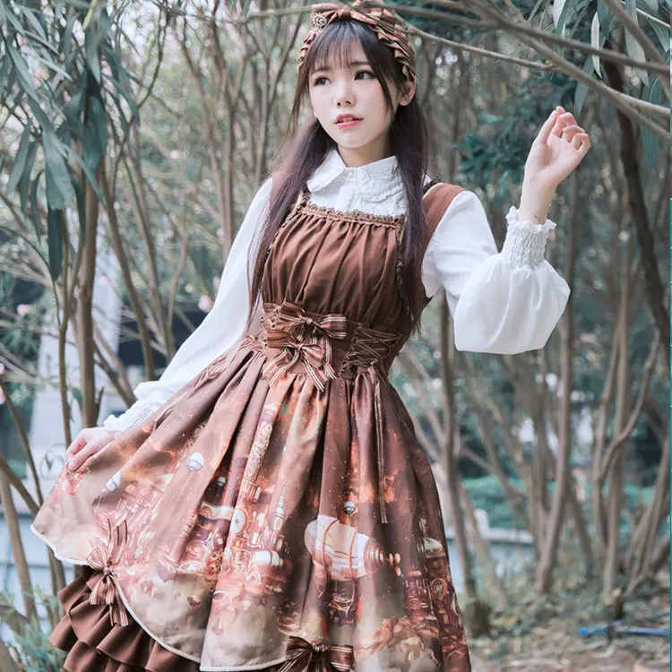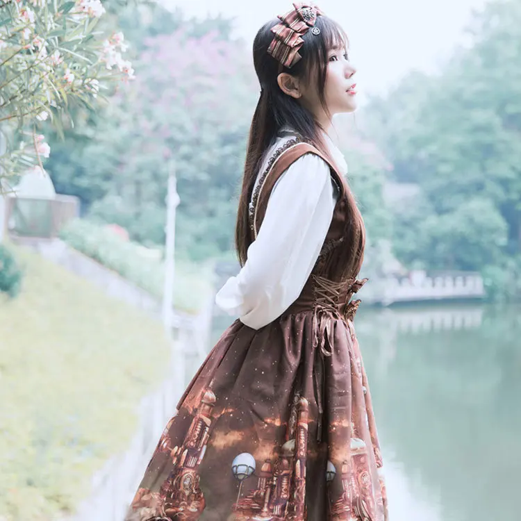 Весеннее Новое Женское Платье Лолиты JSK паровое Платье с принтом "замок" Винтажное женское платье