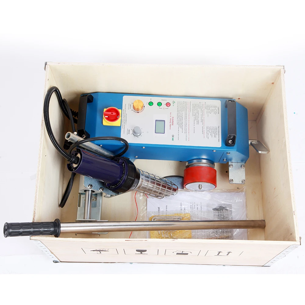 4. Во время сварки, пусть сопло горячего воздуха между двумя частицами перекрытия. И убедитесь, что сопло горячего воздуха и резиновые колеса идут по прямой линии. Если нет, пожалуйста, отрегулируйте вручную.