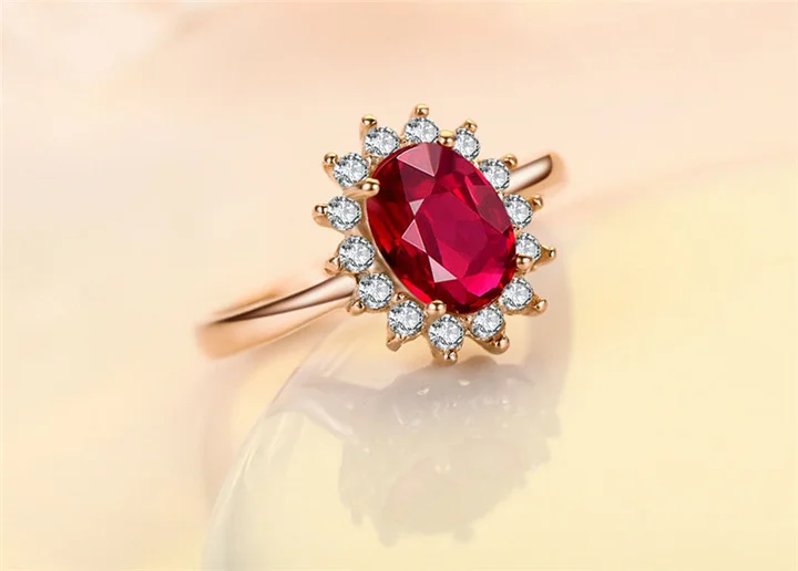 JYouHF Korean Style Red Corundum Wedding Rings for Women Fashion Natural Stone White Rose Gold Color Female Finger Rings Jewelry