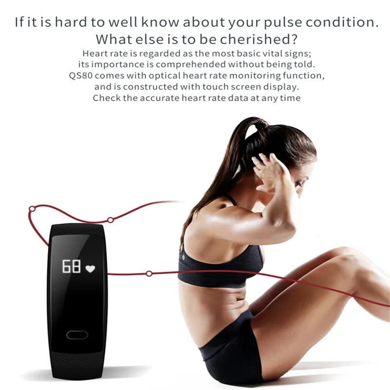 Huiniu qs80 Bluetooth SmartBand напоминание смарт-ремешок кровяное давление Браслет фитнес-трекер Браслет для IOS Android