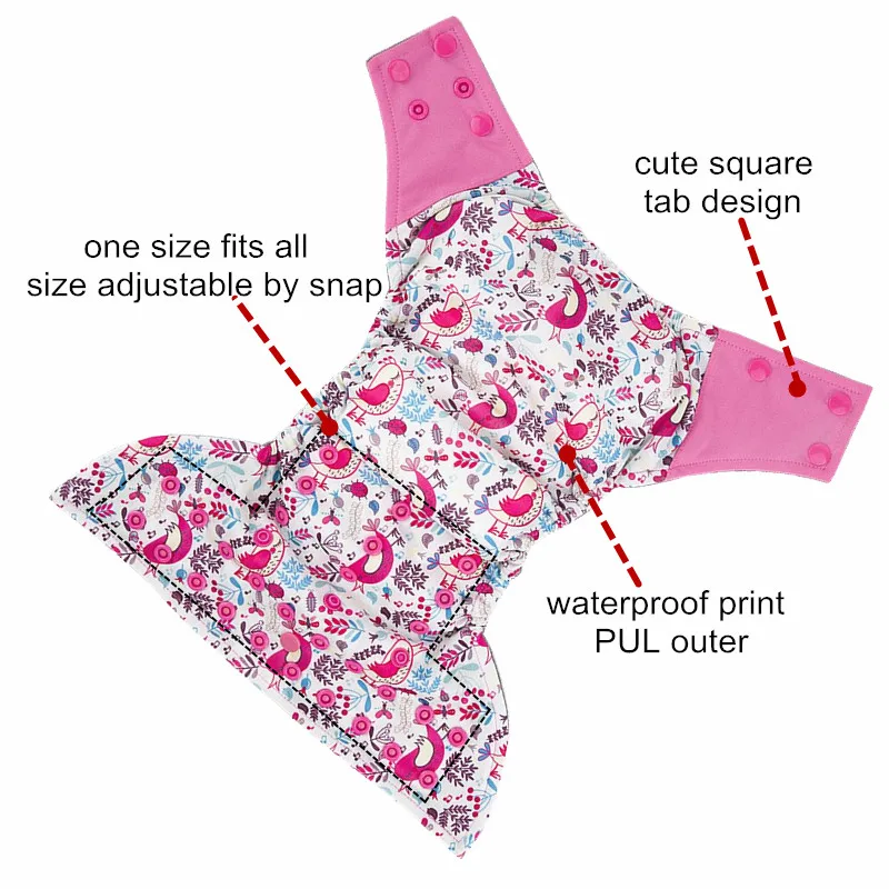 Размеры: Регулируемый Размер: 3-15 кг, 3-36 месяцев Материал: -Внешний слой:Водонепроницаемый отпечатанного полотна с полиуретановыми нитями -Вставка:3 слоя микрофибры, впитывающая ткань, ПРИШИТАЯ внутри -Внутренний слой:100% полиэстер, микрофлис, дышащий и абсорбирующий Инструкции по уходу: -Стирать тканевые подгузники отдельно от другого белья -Отделите подгузники. Если твердые, встряхните твердые отходы в унитаз. -Краску в холодной воде. Машинная стирка в теплой воде, использование мягкого моющего средства(Менее 95 °F), Рекомендуется Babyhug стиральный порошок. -Ручная сушка,Не используйте мягкие ткани, отбеливатель и сушильные листы. Сколько подгузников вам нужно? -От новорожденных до 4 месяцев, 20-30 подгузников -Младенцы (от 4 до 10 месяцев)-20 ~ 25 подгузников -Для малышей (более 10 месяцев)-15-20 подгузниковНаши тканевые подгузники одного размера