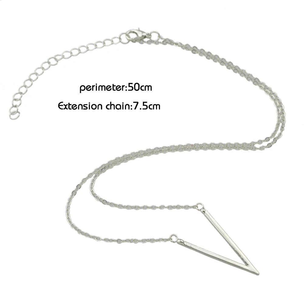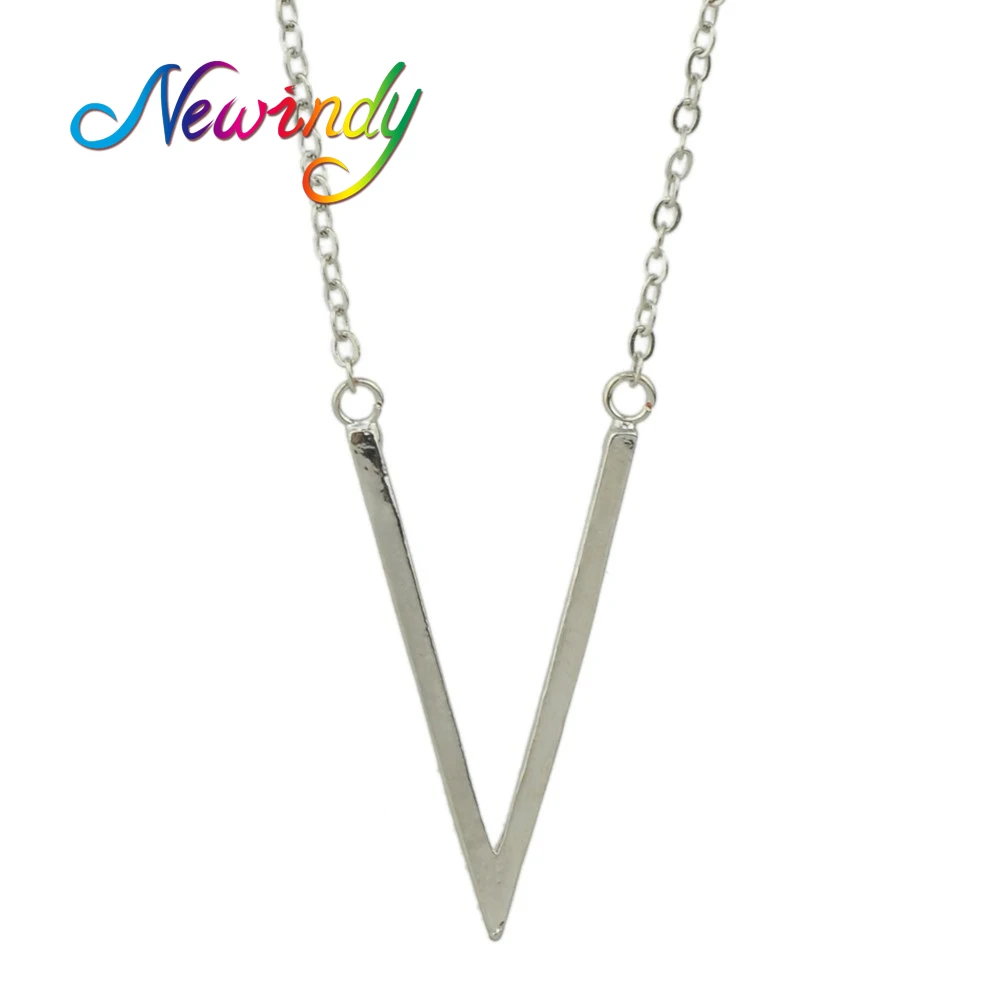 Newindy Fashion Minimalist Jewelry Gold-Color Silver Color Long Chain Necklace With Geometric V Shape Pendant Necklace For Women