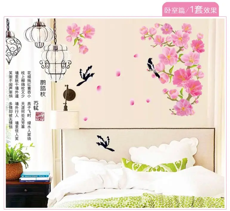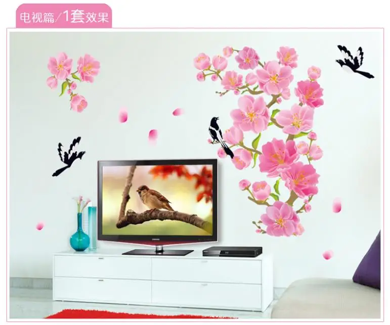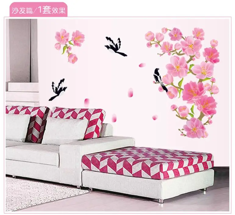 Романтические наклейки на стену с птицами-бабочками и персиковыми цветами, декорация для свадебной гостиной и спальни, фотообои 5089