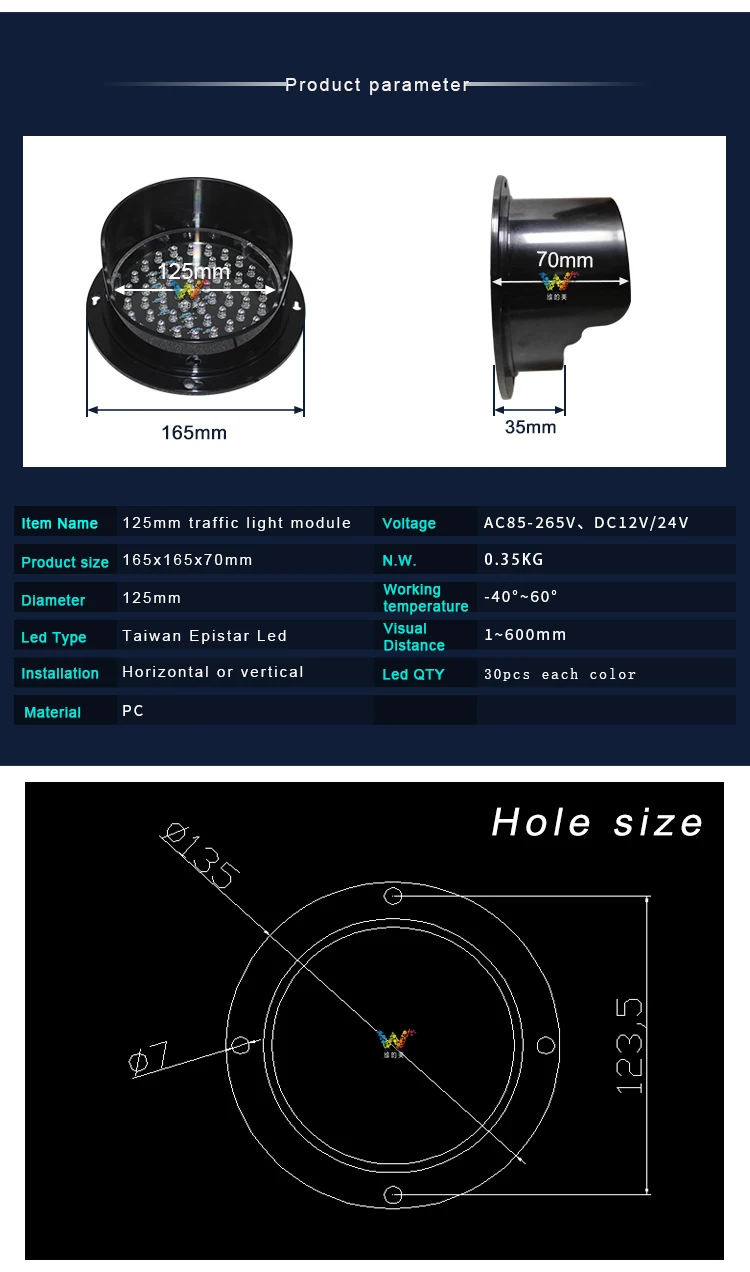 Diameter:125mm(light), 165mm(plasic shell)