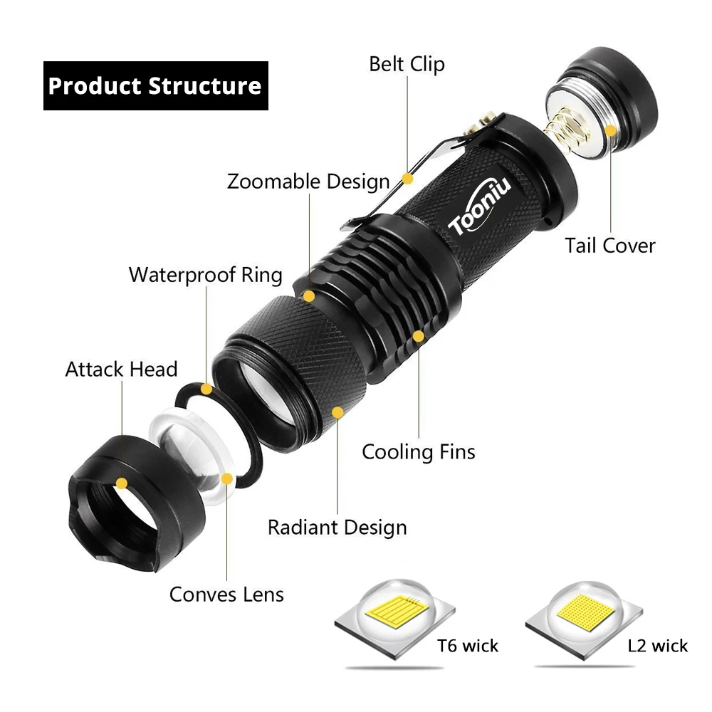 XML-T6 и XML-L2 фонарик использовать аккумулятор 18650!