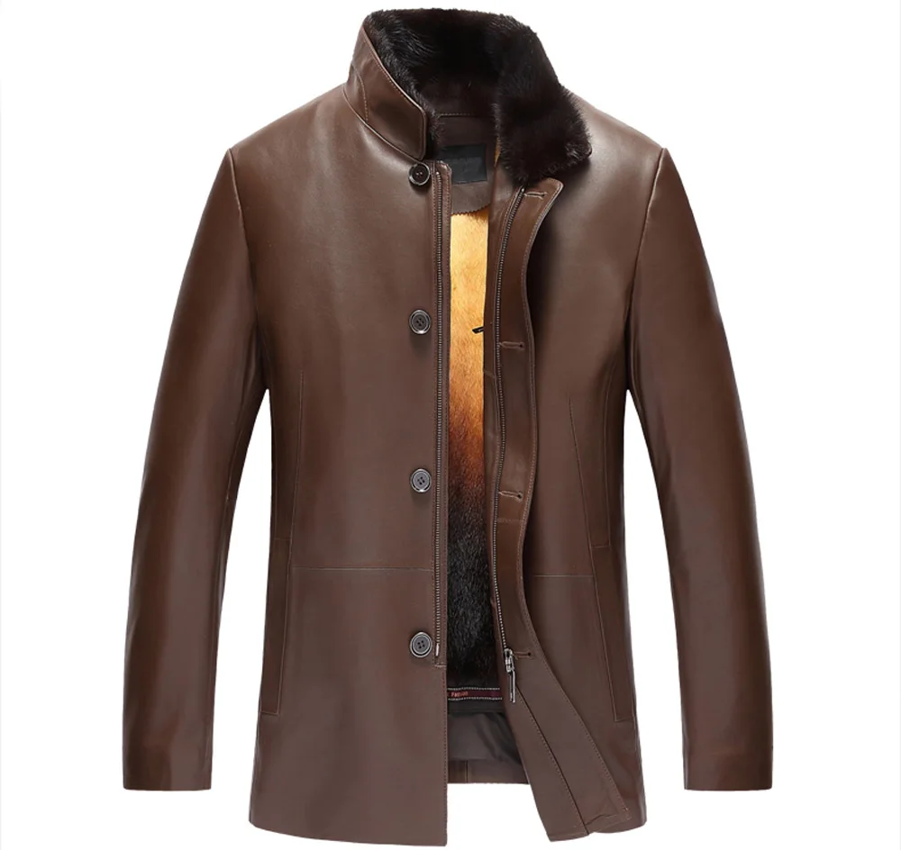 Для мужчин съемный мех норки с подкладкой кожаные пальто овчины Верхняя одежда со съемным мехом парка с подкладкой на заказ Роскошный натуральный мех пальто для мужчин