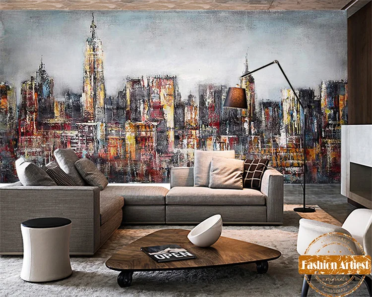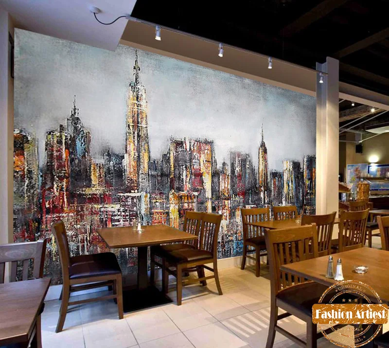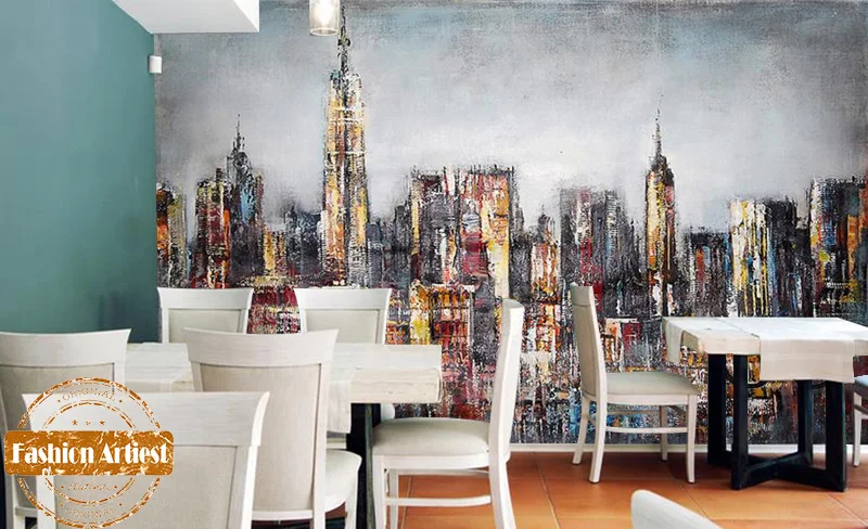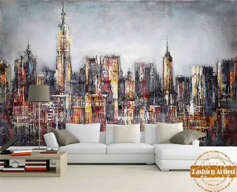 Пользовательские Современные обои с видом на город абстрактные высокие здания картина маслом ТВ диван спальня гостиная кафе бар ресторан