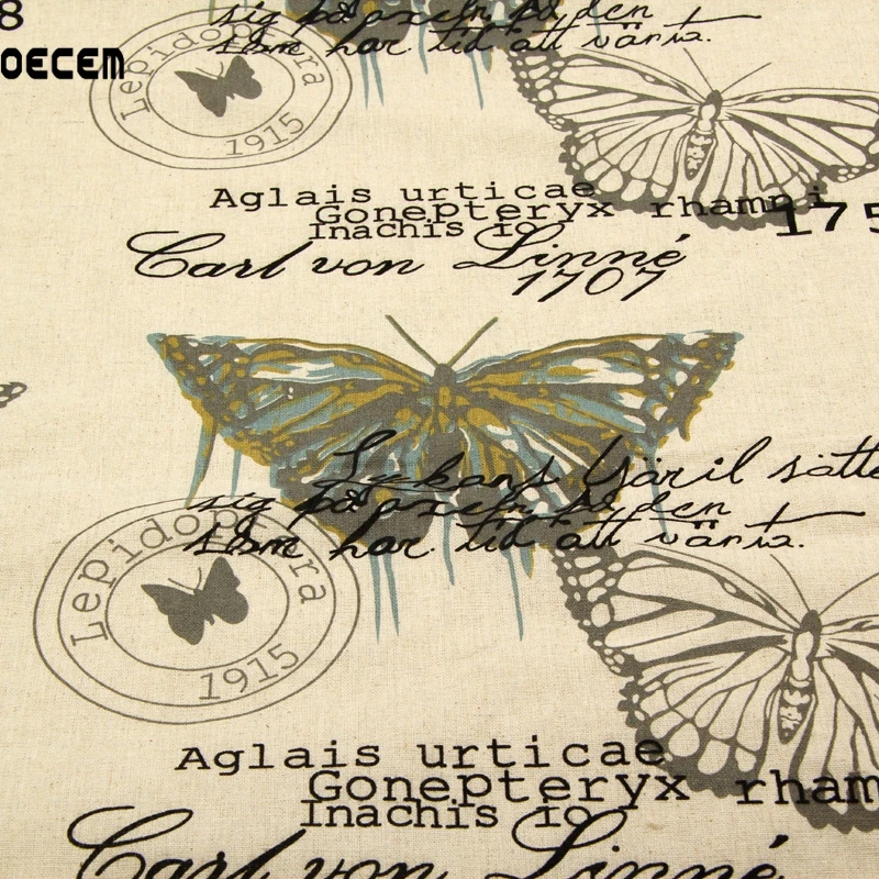 Product Name:Butterfly Printed Vintage Natural Linen Fabric Meter