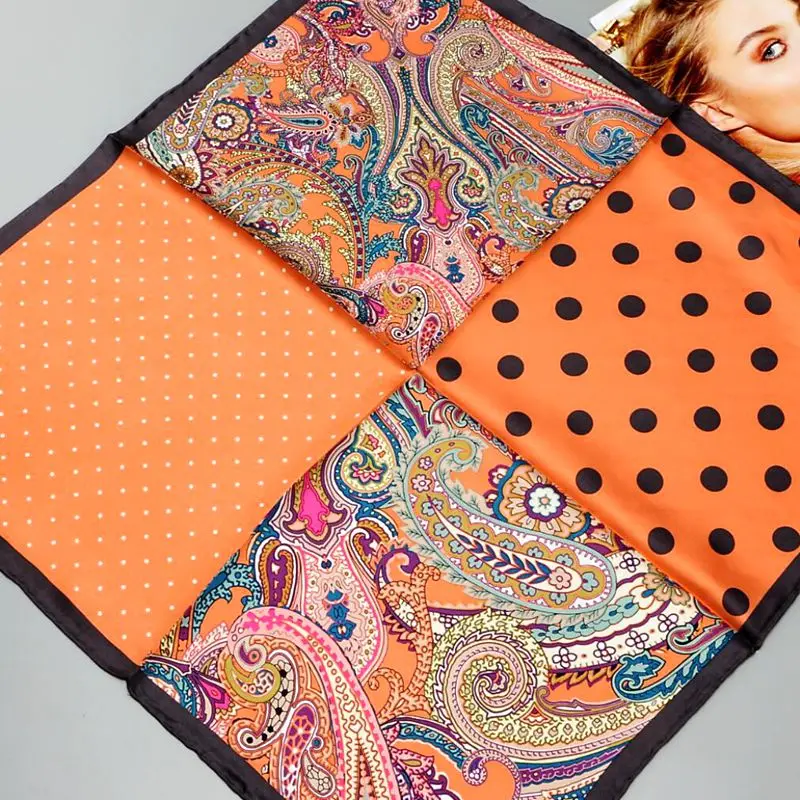 HANSCARF квадратный шелковый шарф для женщин 2017 Модный узор в горошек и Пейсли 100% Шелковый саржевый шарф бандана хиджаб