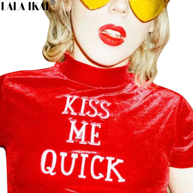 Красный бархатный топ Женская водолазка укороченные топы Футболка женская футболка с буквенной вышивкой с коротким рукавом женская футболка