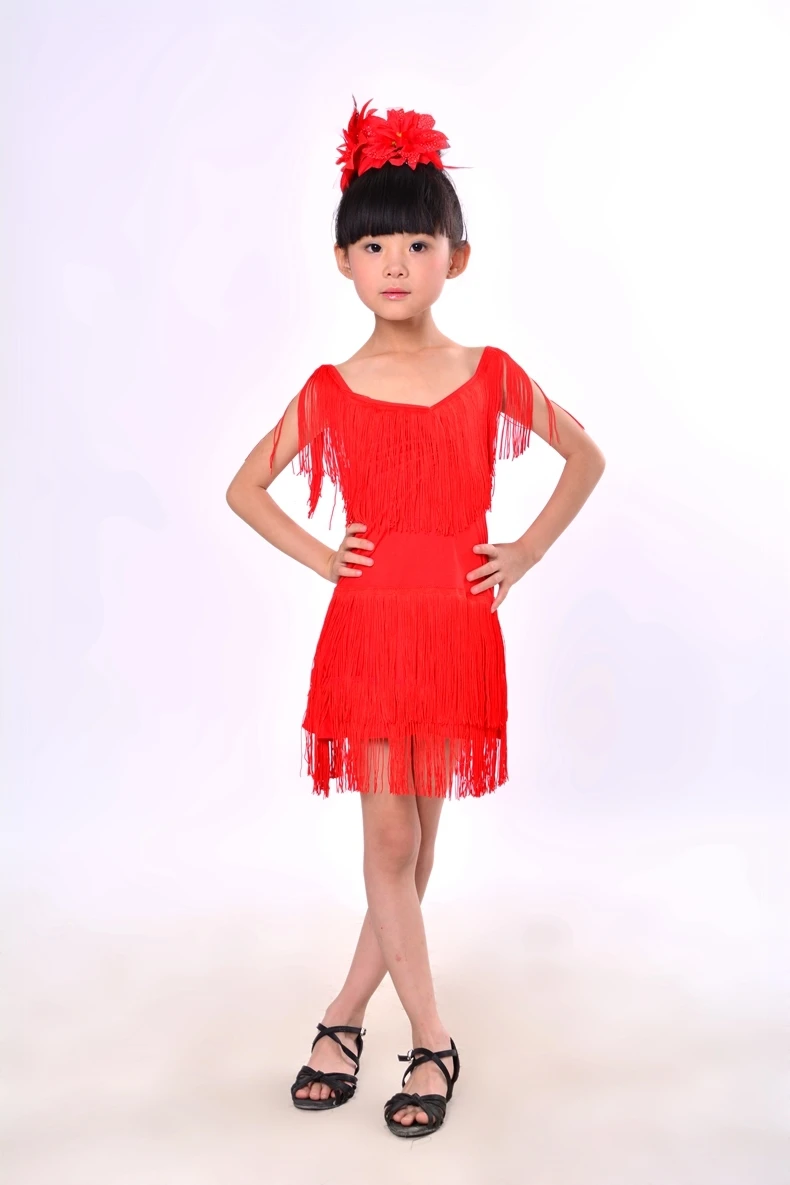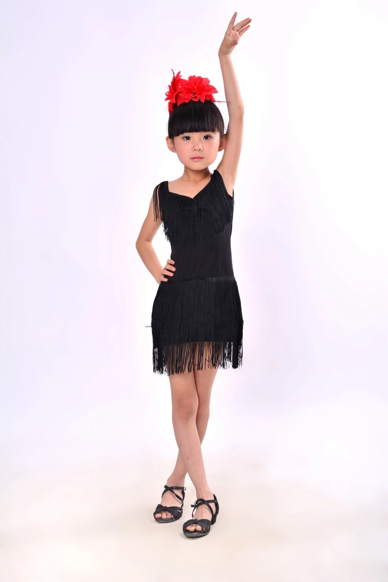Новые дети, девочки, дешевая Сексуальная черная, синяя, красная, розовая бахрома для сальсы, танцевальная одежда, танцевальный костюм для сальсы, танцевальные платья
