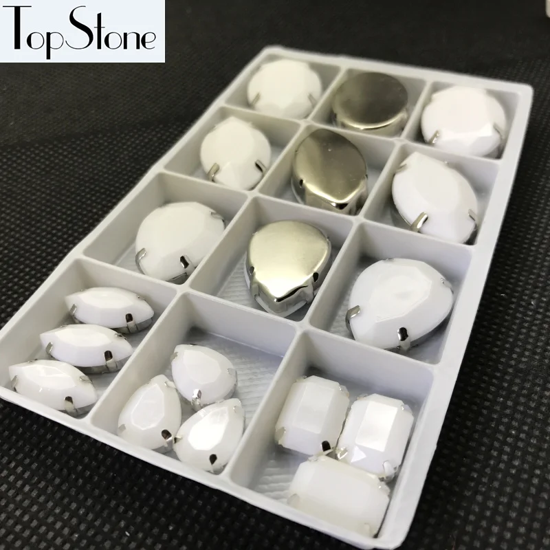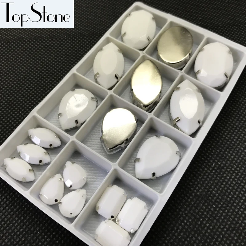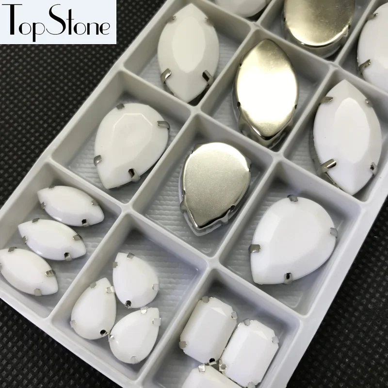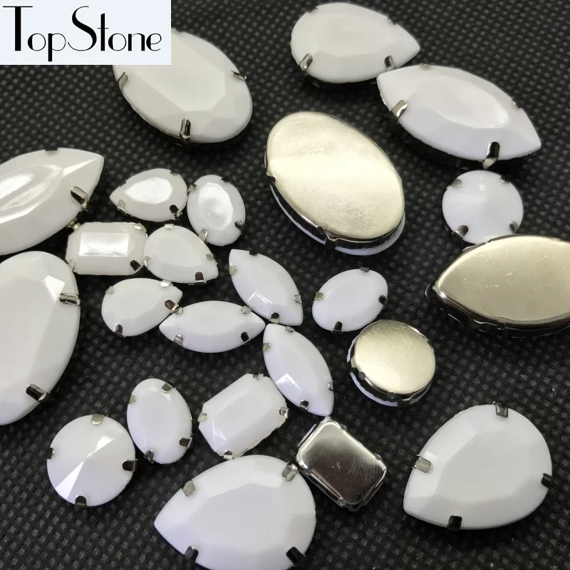 20 шт Мел белого цвета Акриловые Необычные камни с металлическим когтями установка каплевидный, Navette,Rivoli, Овальные, прямоугольные Швейные бусины