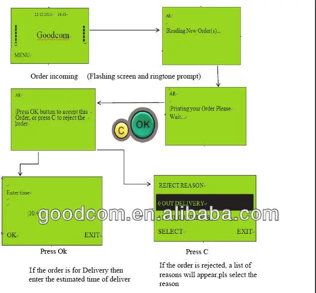GPRS SMS принтер GT5000S может быть использован для принятия/отклонения orderrs.