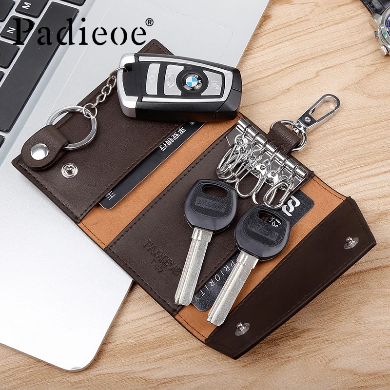 Padieoe новые мужские ключ мешок высшего Разделение кожа Для женщин ключница Мода из двери Органайзер для ключей сумка 2017 Лидер продаж Визитница в повседневном стиле