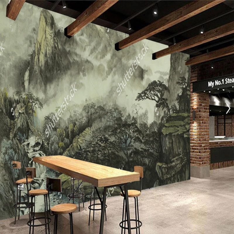 Chinese landscape wallpaper,mountains,waterfall,fog,house,retro mural for living room bedroom sofa background wall vinyl paper