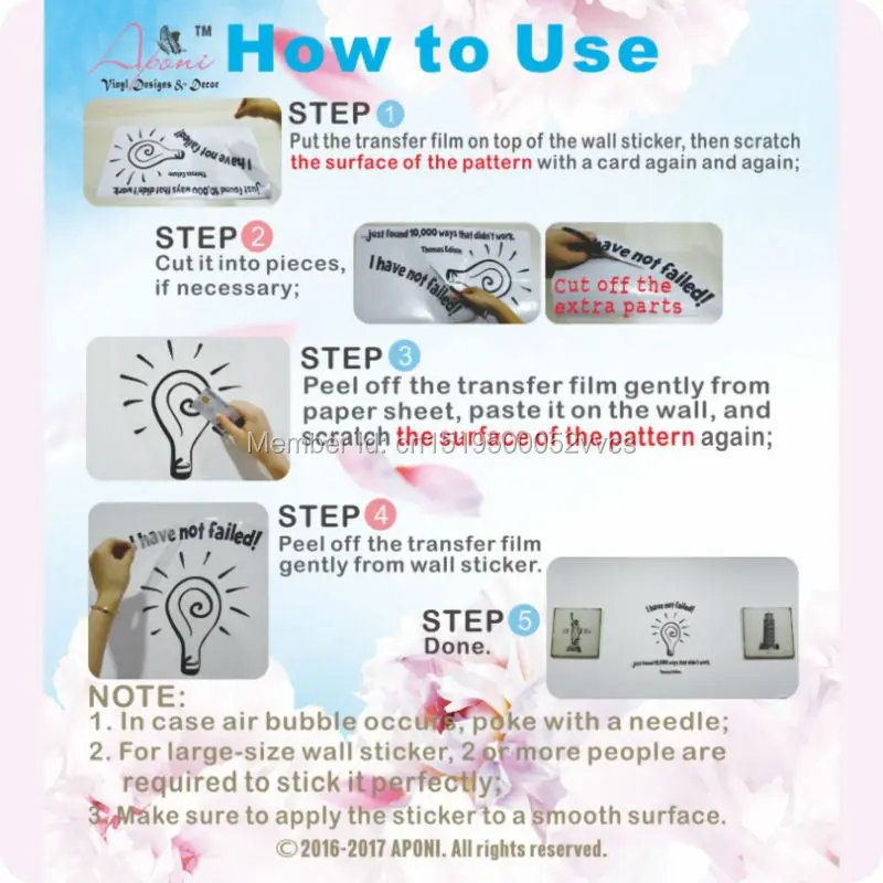 Шаг первый:Поместите пленку для переноса поверх наклейки на стену, затем поцарапайте поверхность рисунка с помощью карты снова и снова;