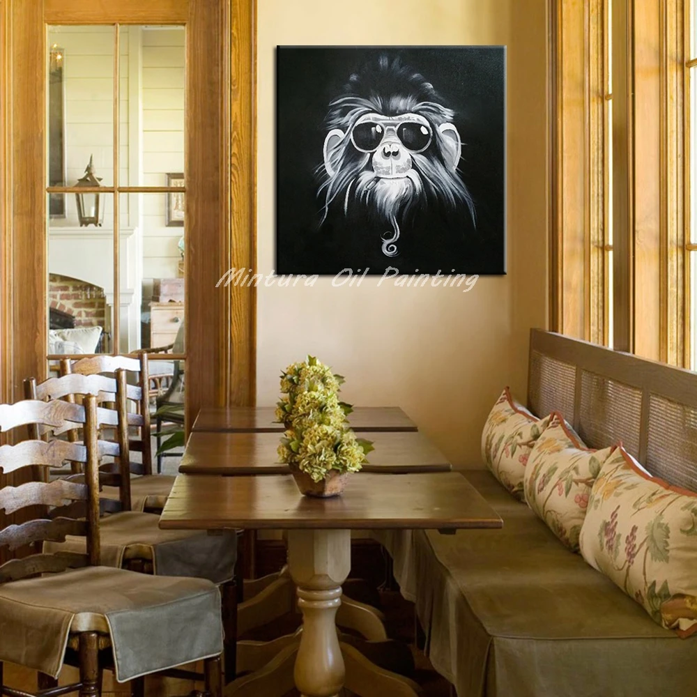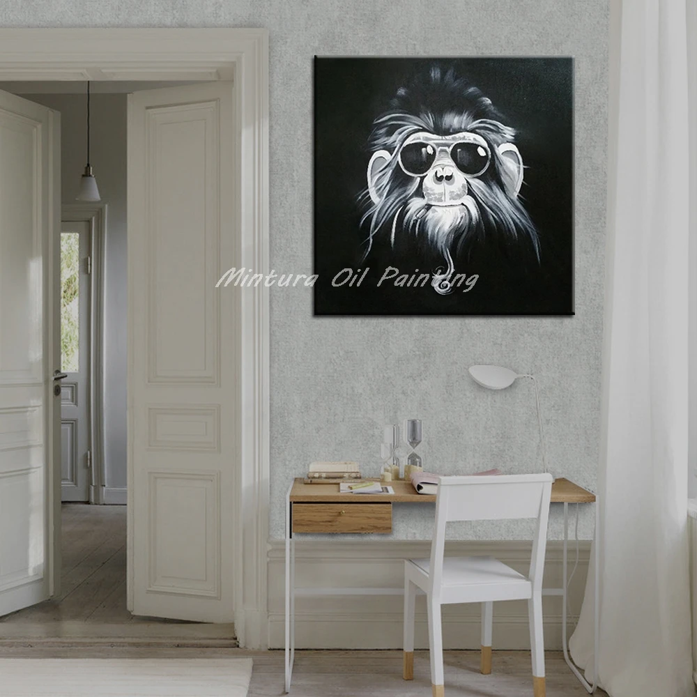 Описание товара:Mintura картина маслом очки Gorillas Ручная роспись холст картины настенные картины для домашнего декора стены искусства мультфильм животное картина.