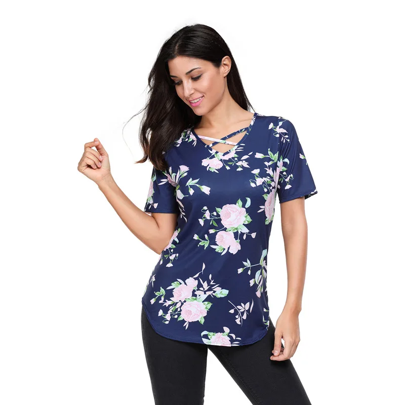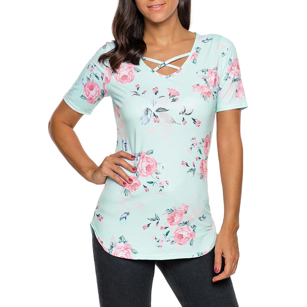 Летний стиль футболка женская цветочный принт с коротким рукавом обычный Топ Camisetas Mujer 8 цветов оптом