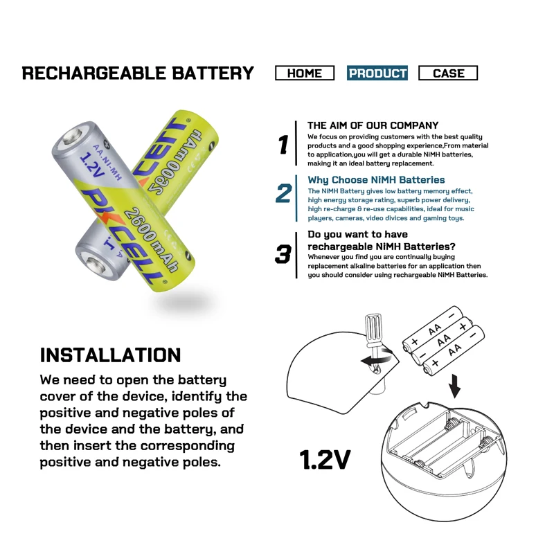 Тип батареи:Аккумуляторная батарея 1.2V Ni-MH AA 2600mAh