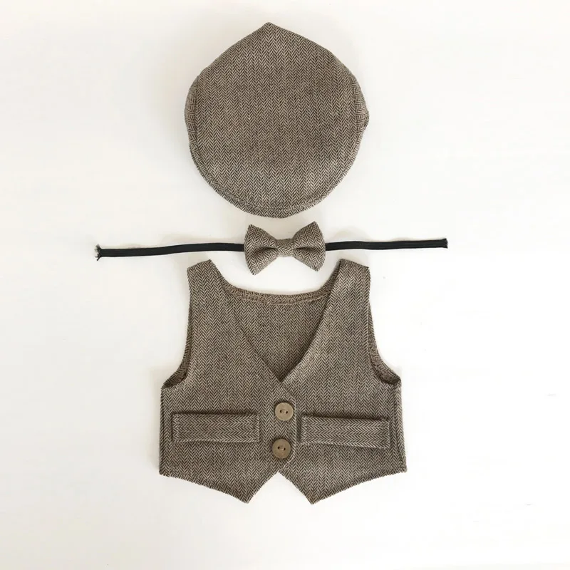 Одежда для маленьких мальчиков реквизит для фотосессии новорожденных милый жилет для новорожденных + шапка + задняя крышка комплект одежды для маленьких мальчиков Аксессуары для фотосессий новорожденных
