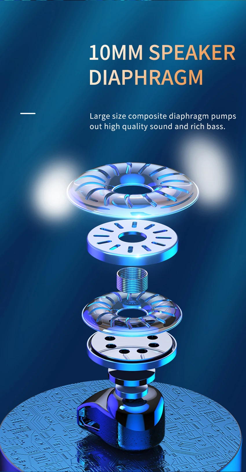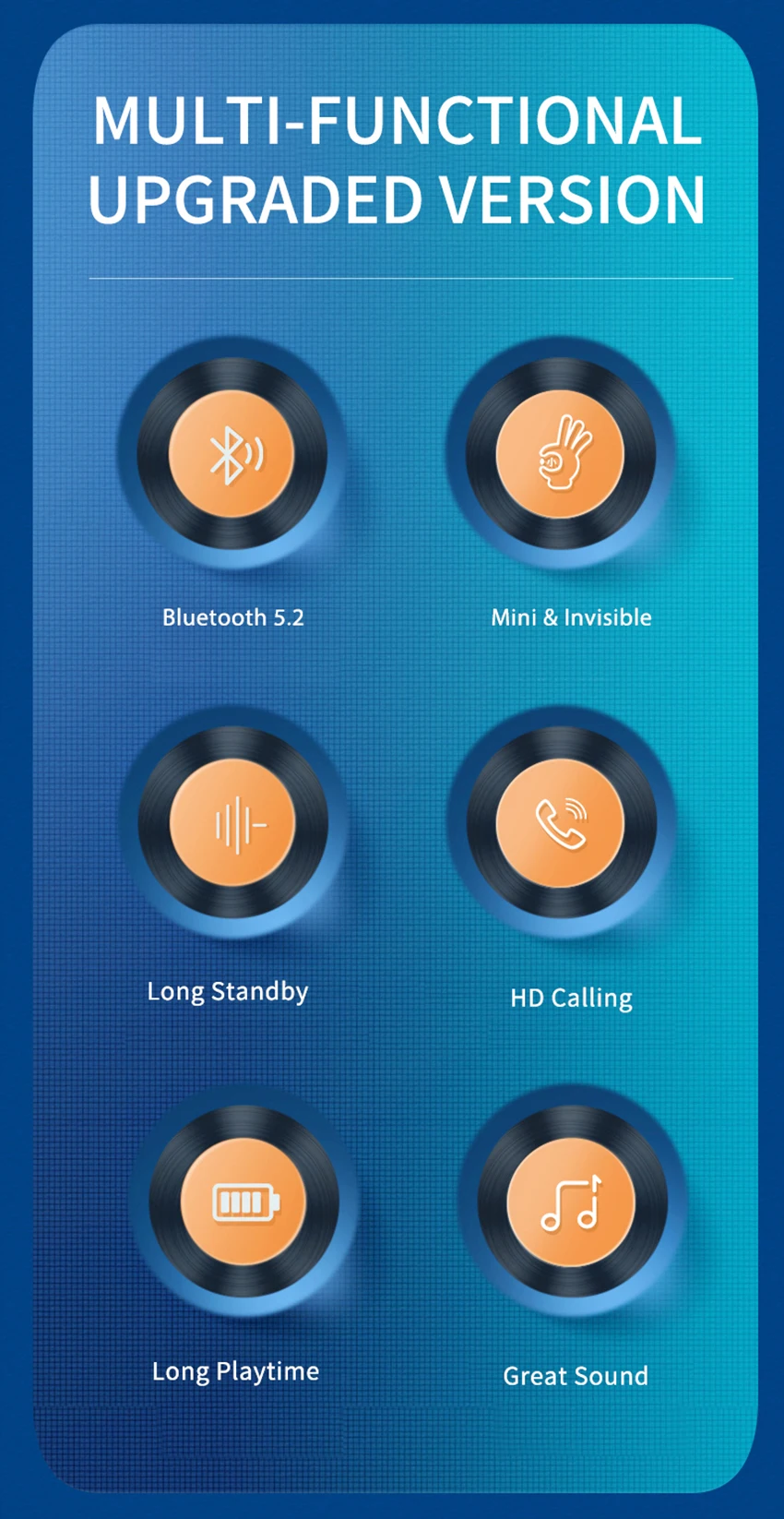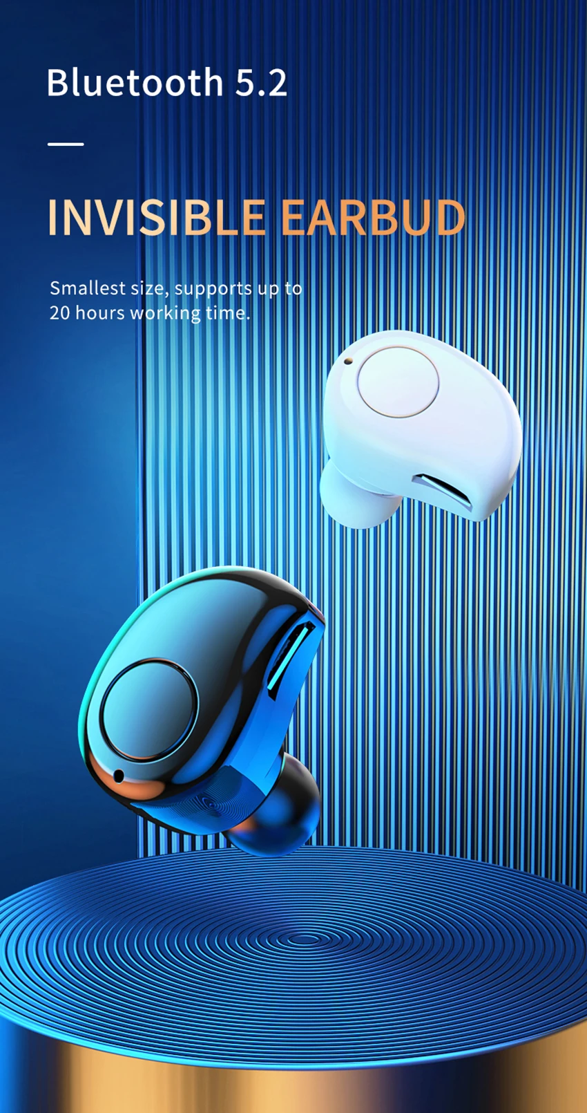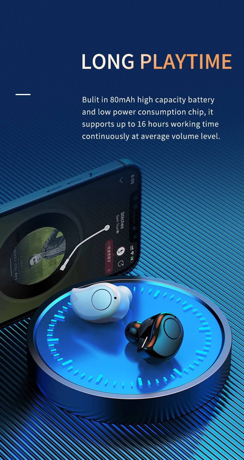 Благодаря компактному портативному дизайну, это самая мини-гарнитура Bluetooth. Высокопроизводительная стерео bluetooth-гарнитура, маленькая, легкая и стильная. Он достаточно мал, чтобы вы могли слушать музыку или смотреть кино во время работы в офисе, и он отлично подходит для вождения. 0,15 OZ только.
