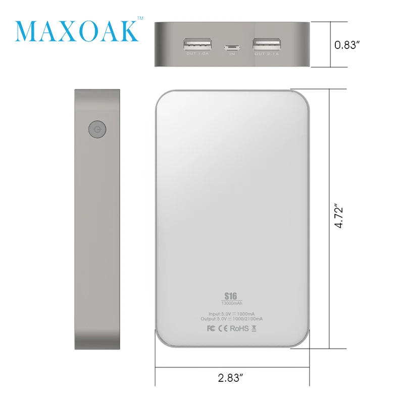 MAXOAK портативное зарядное устройство с двойным USB, цифровым дисплеем питания 13000mah DC 5V-2.1A зарядное устройство для сотового телефона, планшета, Ipad и многое другое