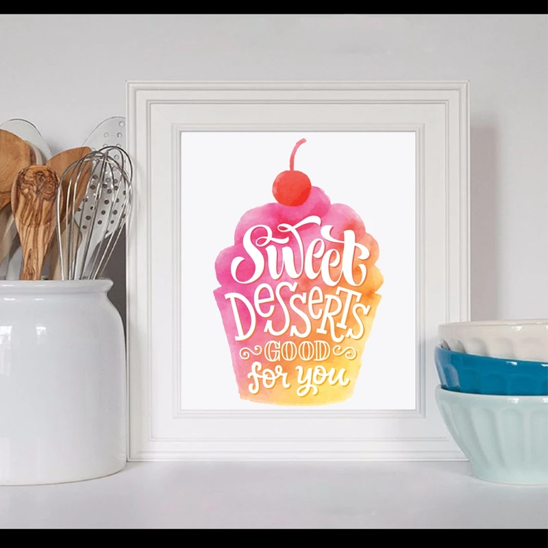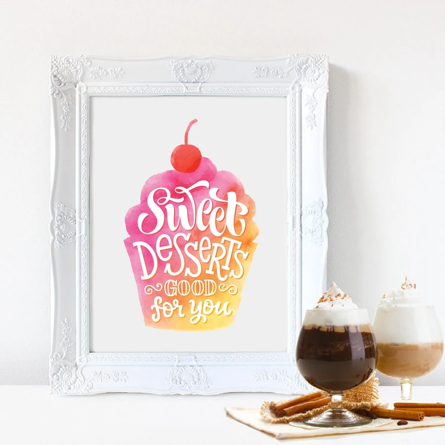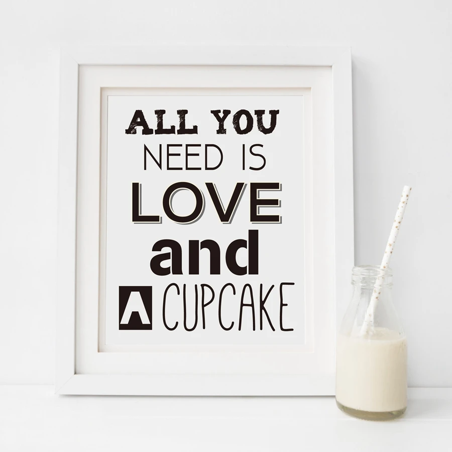 Все, что вам нужно, это любовь и кекс, Настенные рисунки, принт, акварель, сладкий десерт, холст, живопись, десерт, магазин, украшение