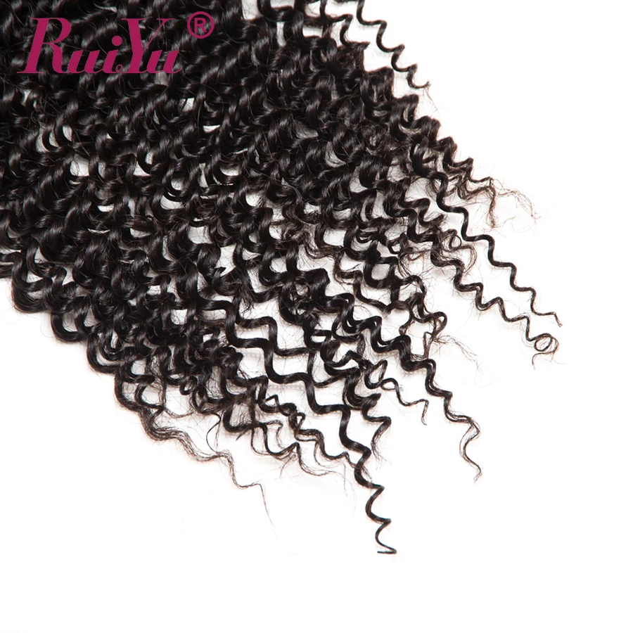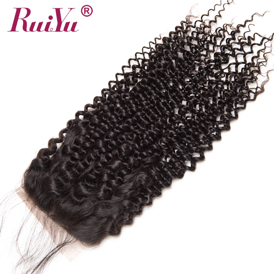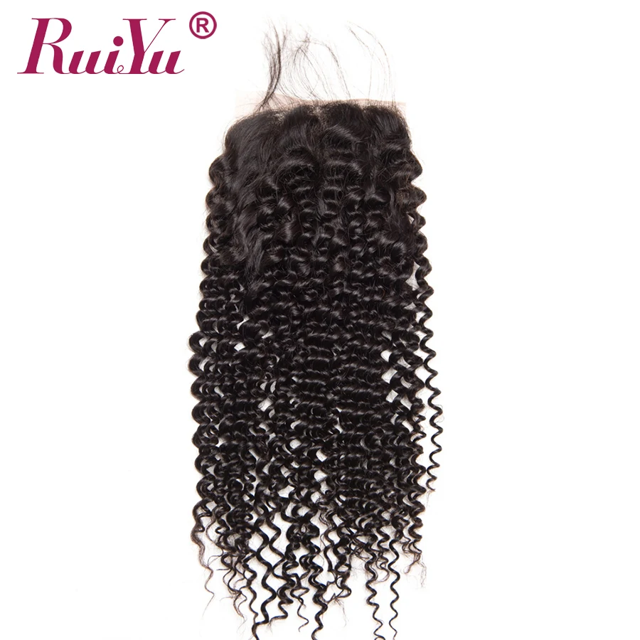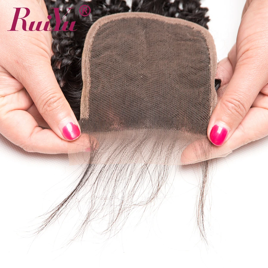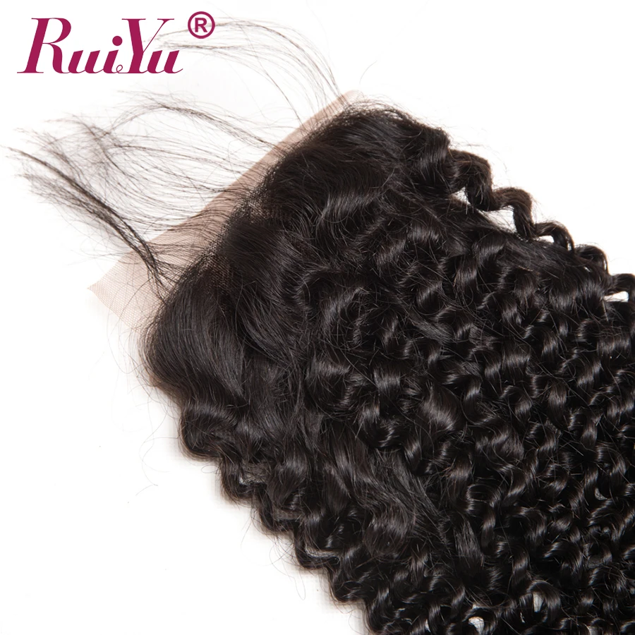 RUIYU бразильские афро кудрявые Вьющиеся Кружева Закрытие 100% человеческих волос с волосами младенца не Remy 4x4 дюймов швейцарские кружева отбеленные узлы