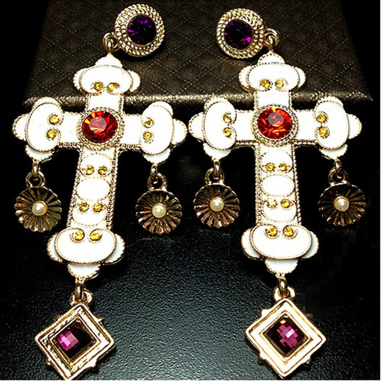 Женский барочный барокко Висячие длинные серьги вечерние преувеличенные серьги-Серьги Винтаж крест серьги Oorbellen Eardrop Aretes BrincosНам $6,99/Шт