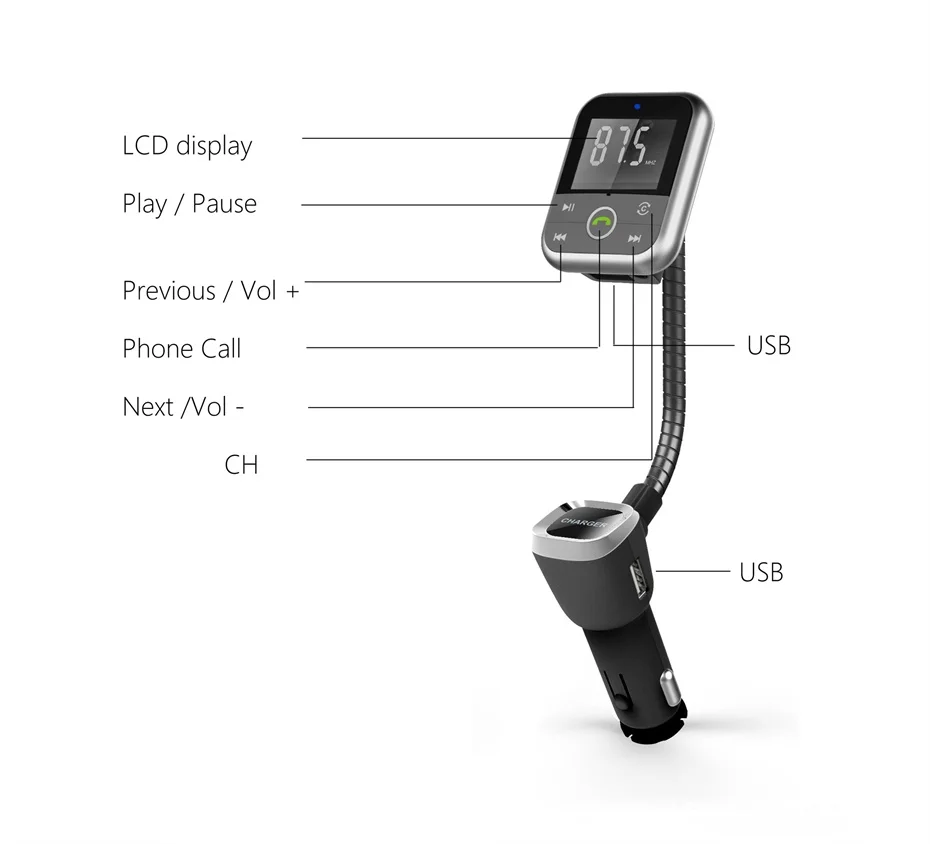 Установите автомобиль FM frenquecny так же, как и устройство FM частоты и Соедините устройство с телефоном с blueooth.
