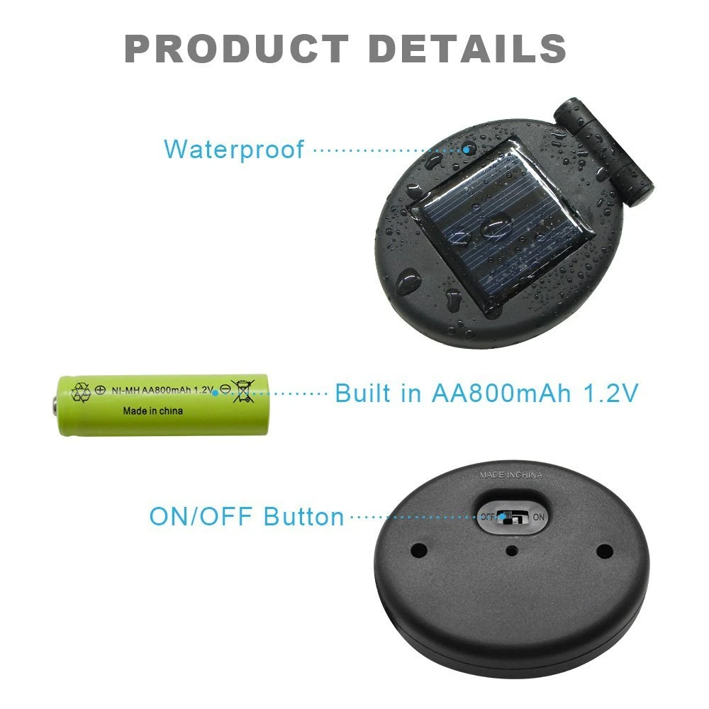 Размеры каждого солнечный светильник: 4,33 дюйма (Ш) x 2,76 дюймов D x 29,92 дюйма H (11 см (ширина) x 7 см D x 76 см H)