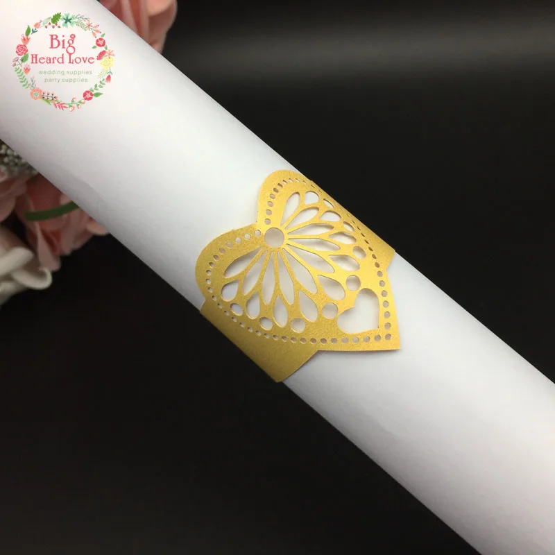 Большой слышала любовь 40 шт. Свадебные салфетницы кружева сердце кольца для салфеток для свадьбы украшения принадлежности бумажное кольцо украшение стола