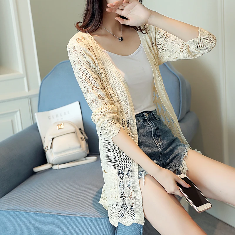 2019 тонкий кардиган, новый летний свитер с полой шалью, маленькая куртка, рубашка для кондиционирования воздуха, длинная Солнцезащитная куртка
