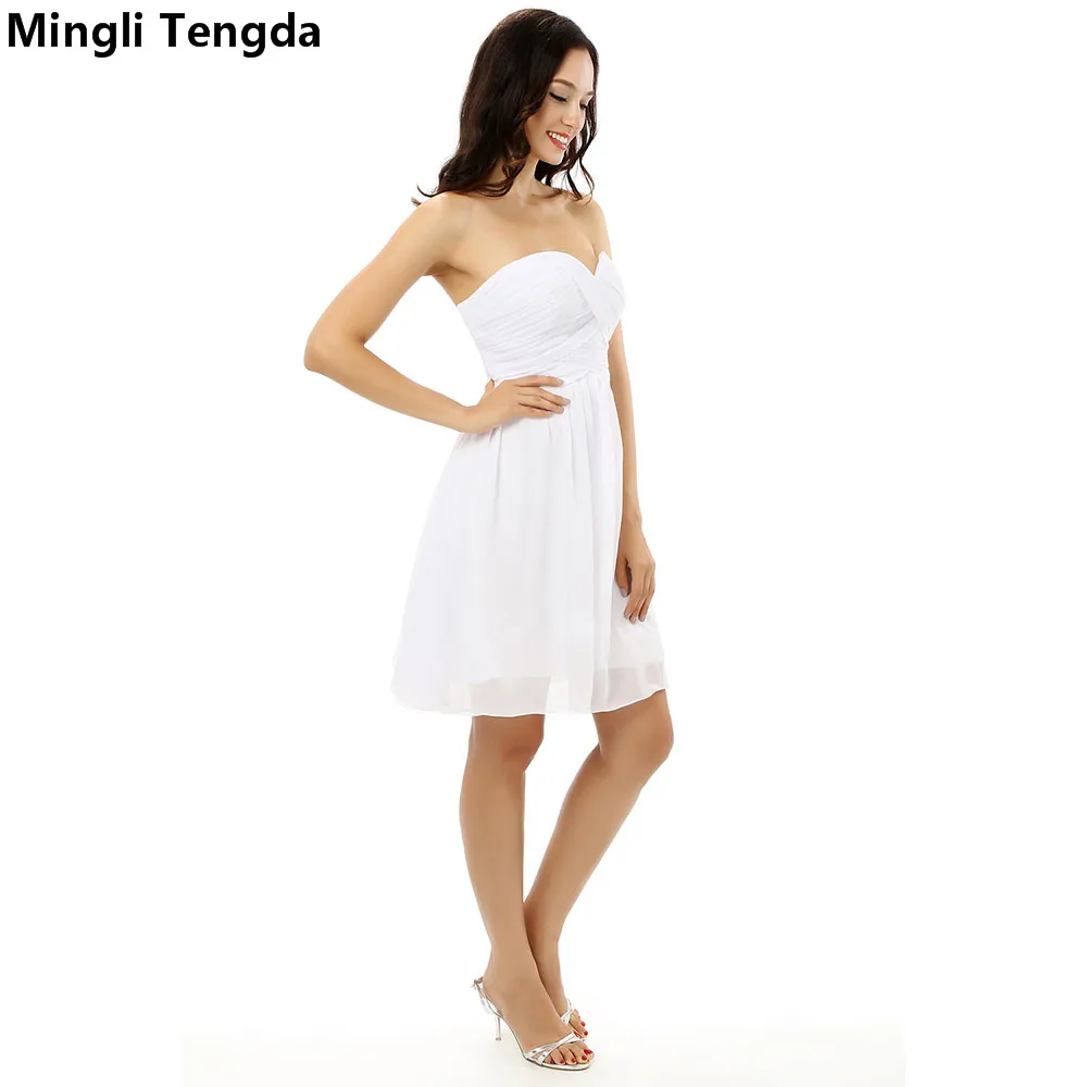 2017 Белые Простые платья для подружек невесты крест-накрест плиссированное платье подружки невесты Дешевые в наличии mingli Tengda платья подружек невесты Короткие![]()