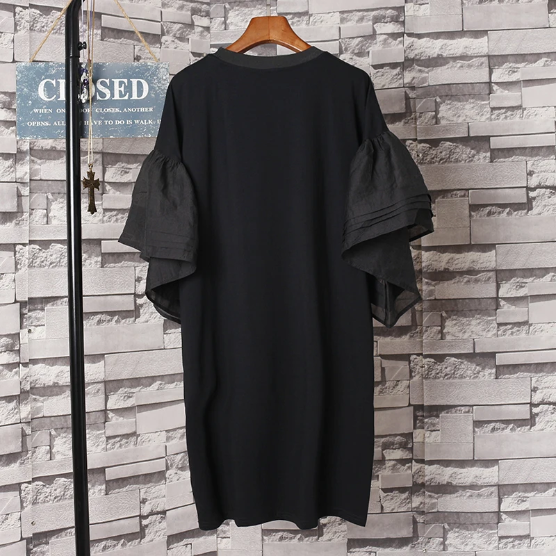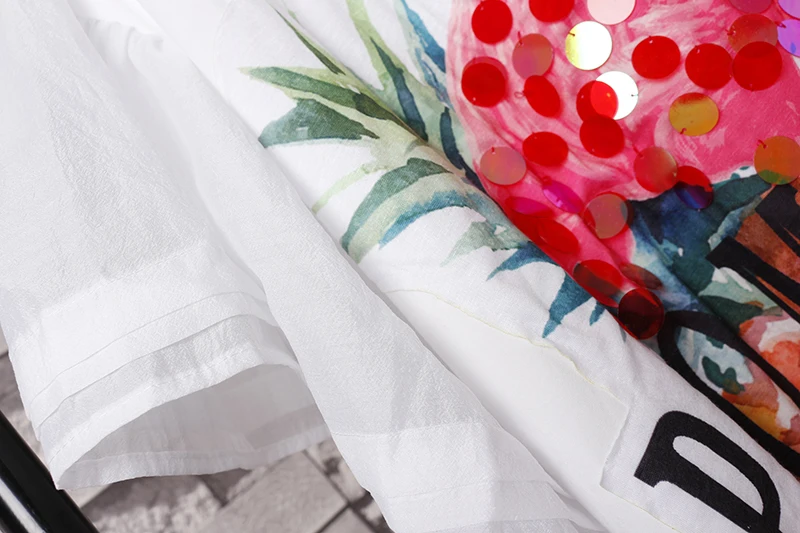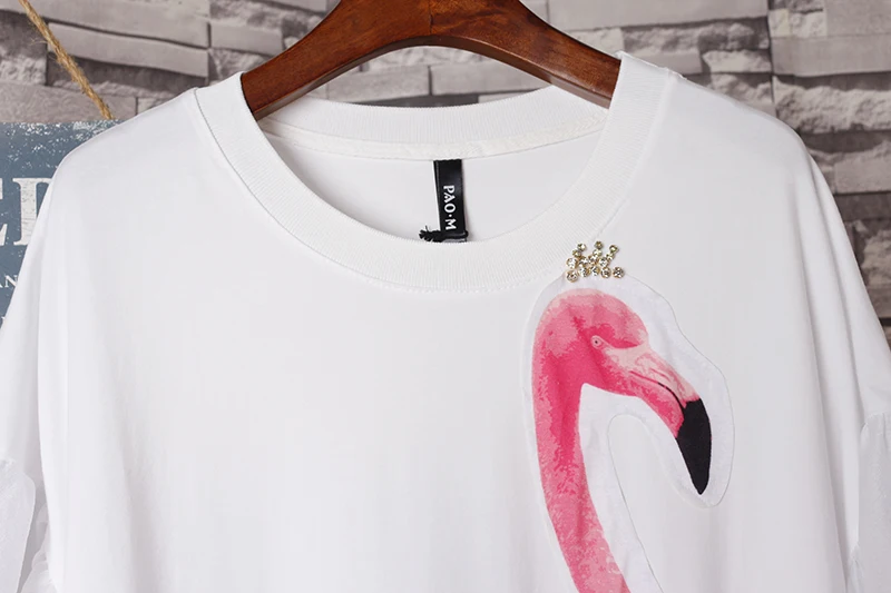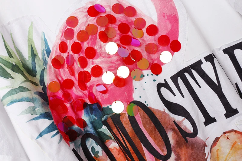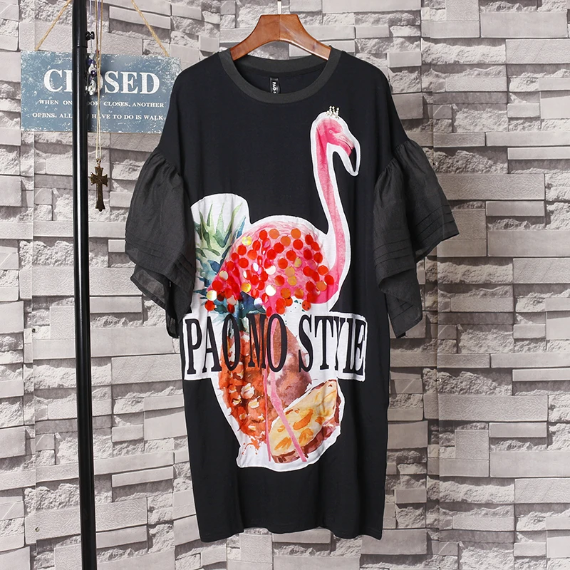 2017 Женская мода мультфильм Фламинго печатных свободное платье с оборками с блестками летнее платье с расклешенными рукавами негабаритных платья