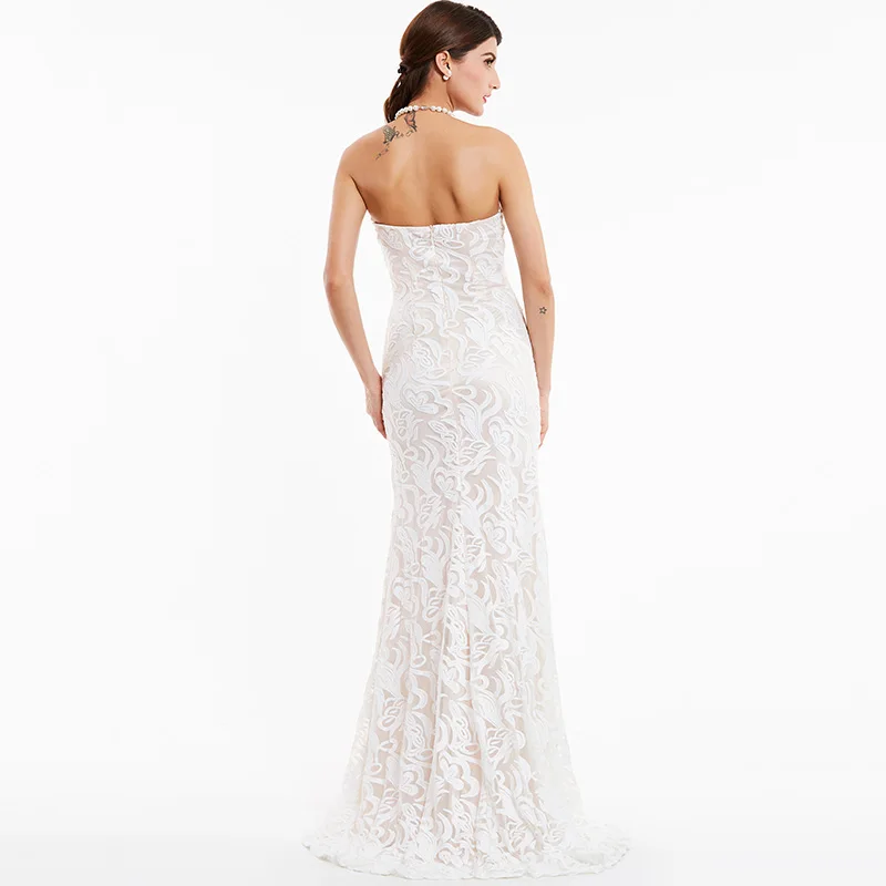 Женское вечернее платье без рукавов Tanpell, длинное кружевное платье цвета слоновой кости, вечернее платье трапециевидной формы, вечернее платье