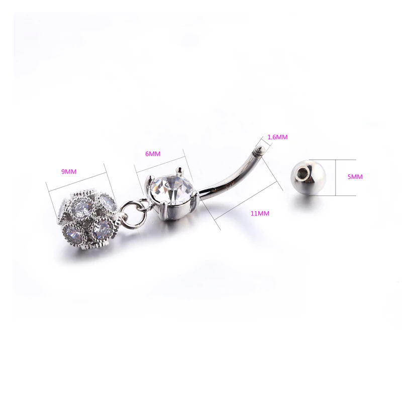 Пикантное пупочное кольцо пирсинг ювелирные изделия хрустальный шар женское модное кольцо для живота блестящее украшение для пирсинга тела