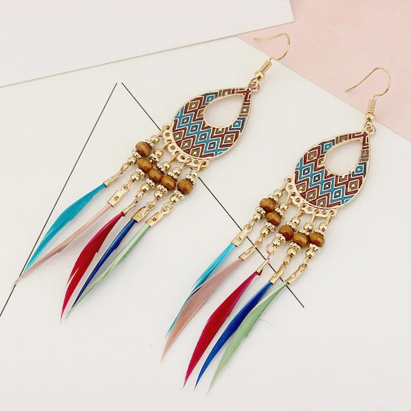 vinnago мода перо серьги длинные серьги старинные золотые Цвет бусы перья кисточкой мотаться для женщин
