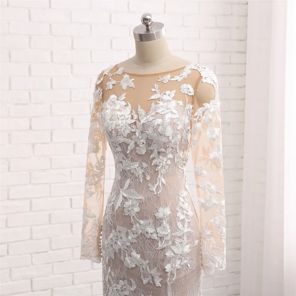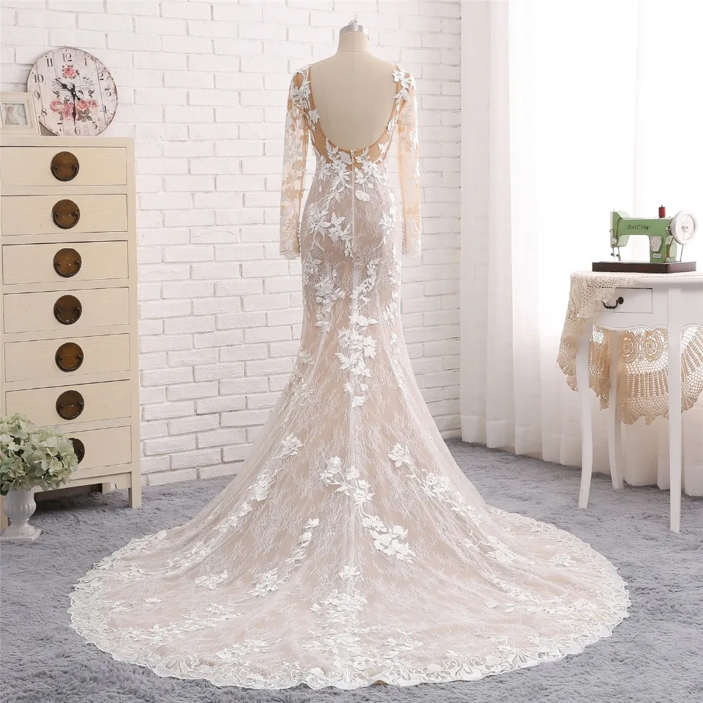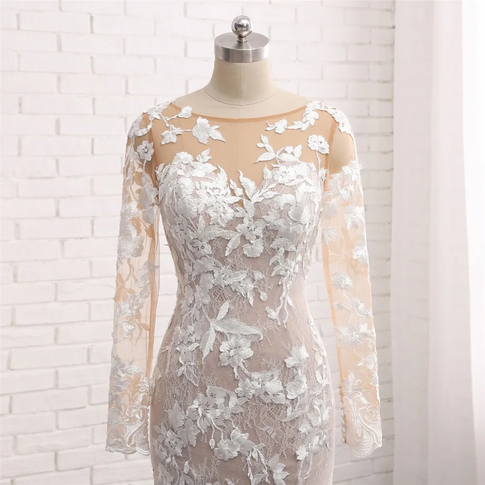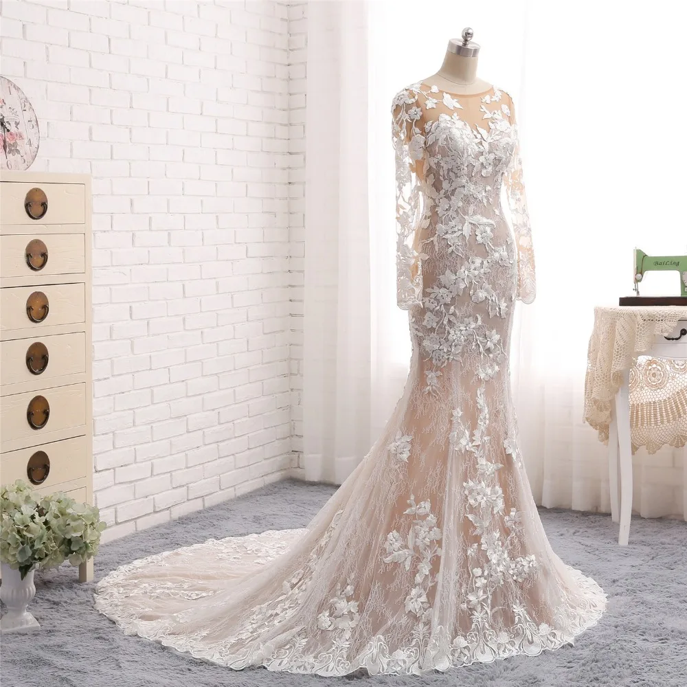 Новое длинное свадебное платье русалки 2018 с круглым вырезом и длинными рукавами Свадебные платья из фатина Vestido de noiva sereia