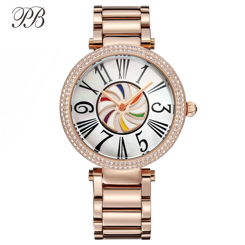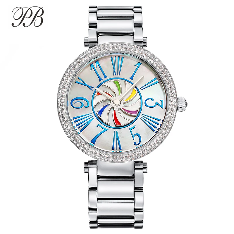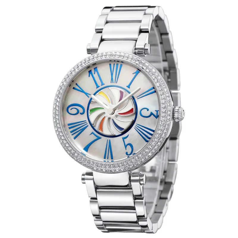 Роскошная цветная мельница Циферблат из нержавеющей часы с металлическим ремешком